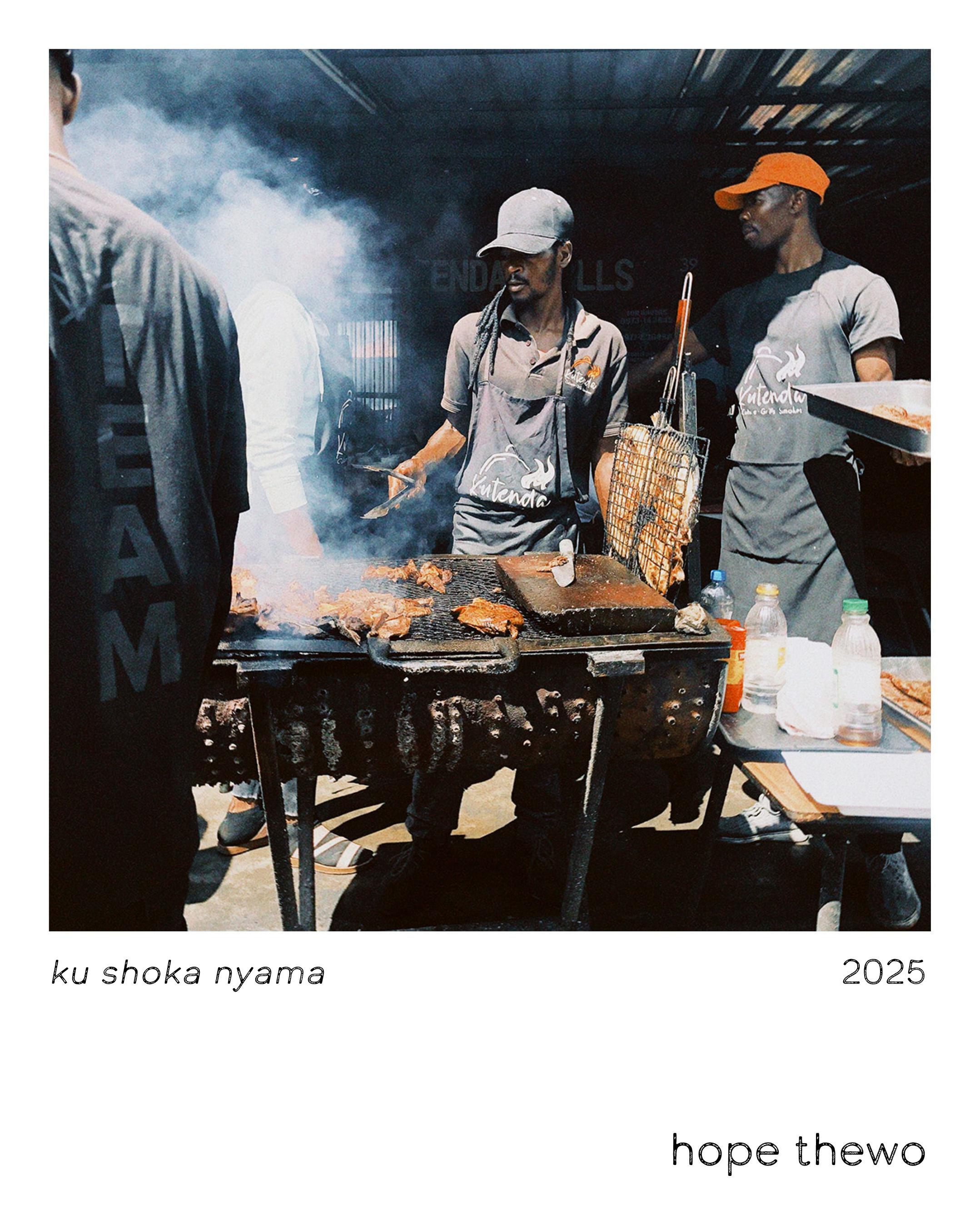‘one city, eight lenses” is an exhibition that visually explores the dynamism of Lusaka’s city and urban landscape through the documentary lenses of eight Open Window University second year photography students. I hear quietness and commotion in Bryanna Chutu’s pictures. Her Lusaka speaks with signs: God bless you, stop, read your Bible, beware of the dog, danger, Keep Lusaka Clean, bad man, I scream. A generator barks on its leash, schoolgirls talk over traffic, and street vendors sing, while mayadi snores. You can smell Lusaka in Hope Thewo’s Polaroids. “The Cola Effect” reeks of red meat. “Mulilo” unfurls the fragrance of fish, while “Kushoka Nyama” sprays spices. The stench of a pit latrine oozes from “Polaroid 32.”